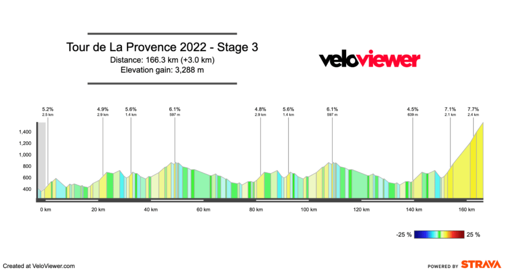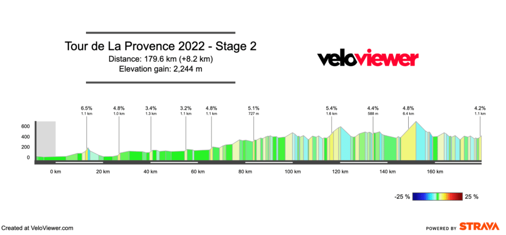 The big mountain stage. The climb is 15km at 6.3% and is a relatively steady effort. The second half of the climb does contain some steeper sections, but this is a climb where riders can settle into a nice rhythm.