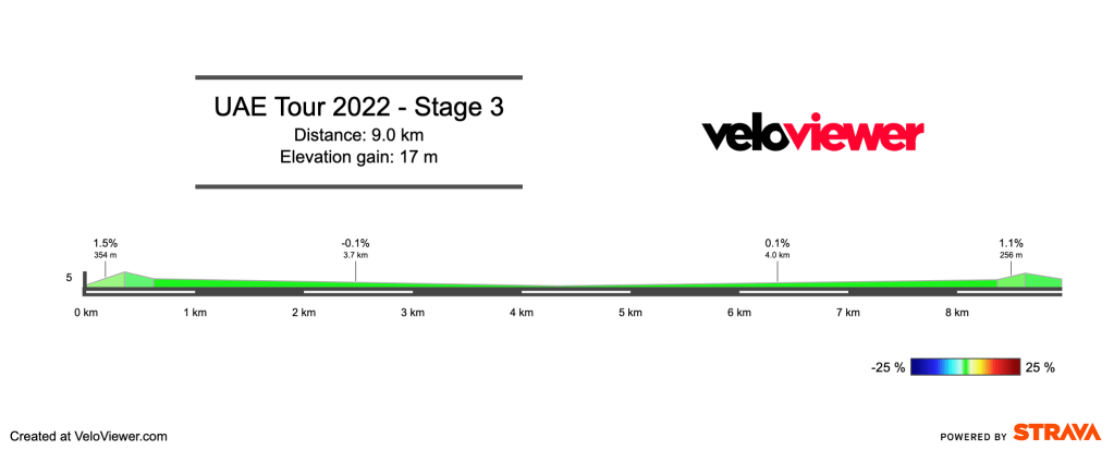 The first of the mountaintop finishes, which this year is Jebel Jais, the easier of the two climbs. This is a much better order for the stages, as it’s very difficult to get gaps on this climb, it normally ends in a sprint. The gradients aren’t overly difficult and it always seems to be a headwind, we’ll see if this year throws up something different.