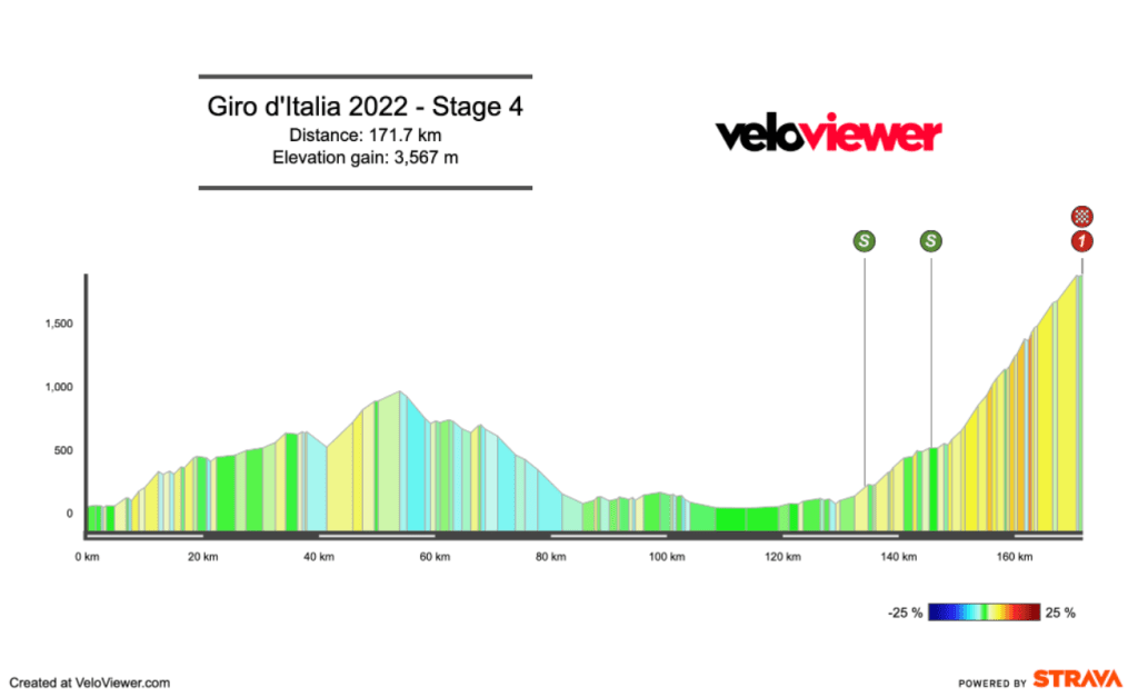 The opening 50km doesn’t contain a classified climb, but it’s full of little kickers. Climbers hoping to make the morning breakaway will be happy that the road isn’t flat, it gives them a much better chance of making the move. As Etna has been kind to the attackers in recent years, this is the first time we’ll see a fight to make the early move. Once it goes, we’ll have to see if anyone in the peloton wants to chase it down.