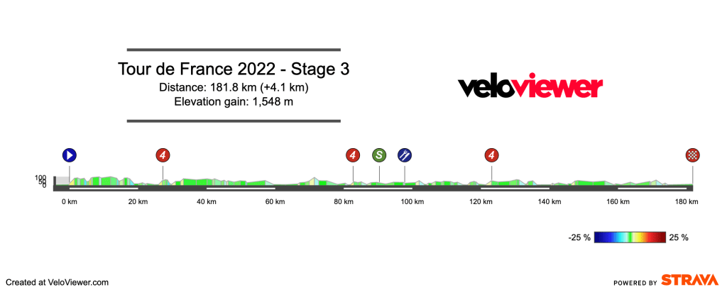 Jumbo-Visma are now in control of the yellow jersey, that means a lot of work for Nathan Van Hooydonck. He’ll get help controlling the break from the other sprint teams, it doesn’t stand a chance. In the echelons section of the stage, some teams will try and split things up, the wind direction is key to their potential success. Given the current forecast, I think it all comes back together for a big sprint.