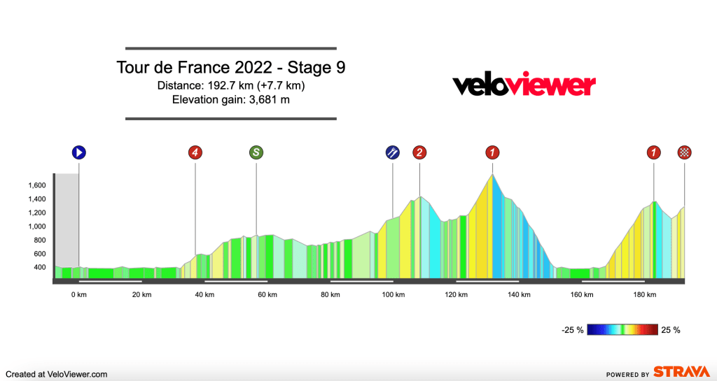 A stage that would normally be one for the breakaway. The reason for this is the position of the final climb, it crests with 10km to go, which normally puts teams off chasing the break down. However, this edition of the Tour has been well controlled by the peloton, maybe one of the GC teams will want a crack at the win.