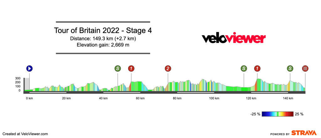 The Carlton Bank climb is where the climbers will hope to do some damage as it’s 2km at 9.8%, with a maximum of almost 19%. The climb is straight into the headwind, but it is well protected by trees, and they should stop a lot of the wind from hitting the riders, at least that’s what I hope.