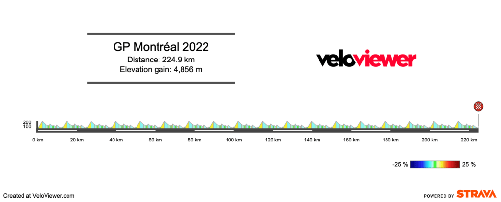 GP Montréal is a race I like; the hilly circuit guarantees exciting racing and I’m looking forward to a cracker of a race. It starts late afternoon over in Europe, so I can watch the early stages with my Sunday roast, before moving beside the fire with a bottle of wine for the closing stages. The route has been tinkered with over the years, an extra little climb was added in 2018, before the race was extended by a couple of laps in 2019. After a couple of years off the calendar the organisers have mainly stuck with the 2019 route, but with a tiny change. The extra climb that was added in 2018 has seen a change, the bunch will climb a parallel street to it, you’ll barely notice a difference. The race is 225km with 4855m of climbing, it’s a tough old race. On paper, one of the hardest one-day races in the year.