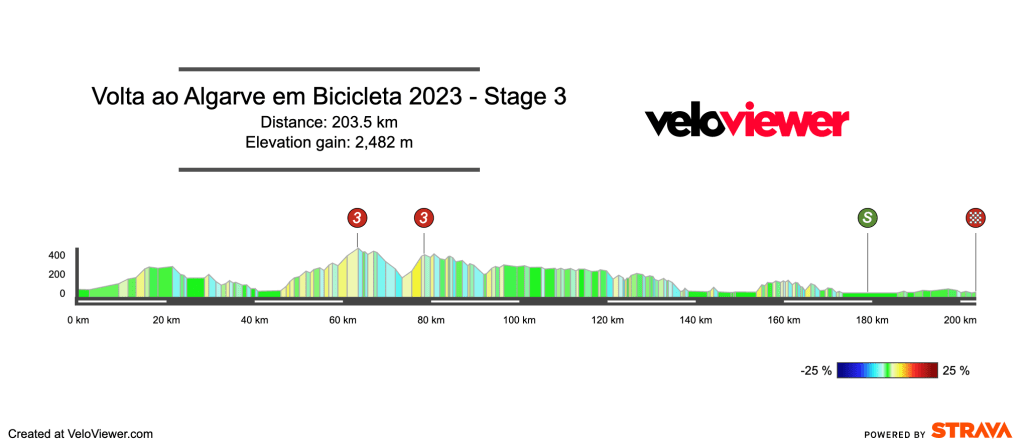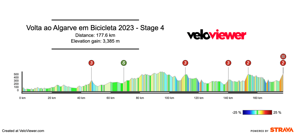 The usual finish at the top of Alto da Fóia. This a stage that normally ends in a sprint between the GC riders, and I don’t expect anything different this time round. One thing to note is the penultimate climb is different to last year.