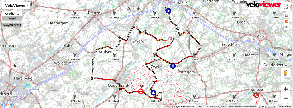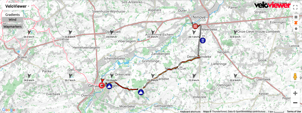 Jumbo-Visma, Ineos, QuickStep and Bahrain will all want to make this race hard for De Lie, they all have the same collective goal. The strong teams will stick to the usual plan of constant attacks until the peloton splits, they’ll all hope to have multiple riders in the front group. Just where the race splits is impossible to predict, but if it hasn’t happened before the Molenberg, then it happens just after. The wind conditions as the group head towards Geraardsbergen are perfect for a group to build a race winning advantage. Some will look at the headwind in the final 10km, but that should pale into insignificance compared to the rest of the race.