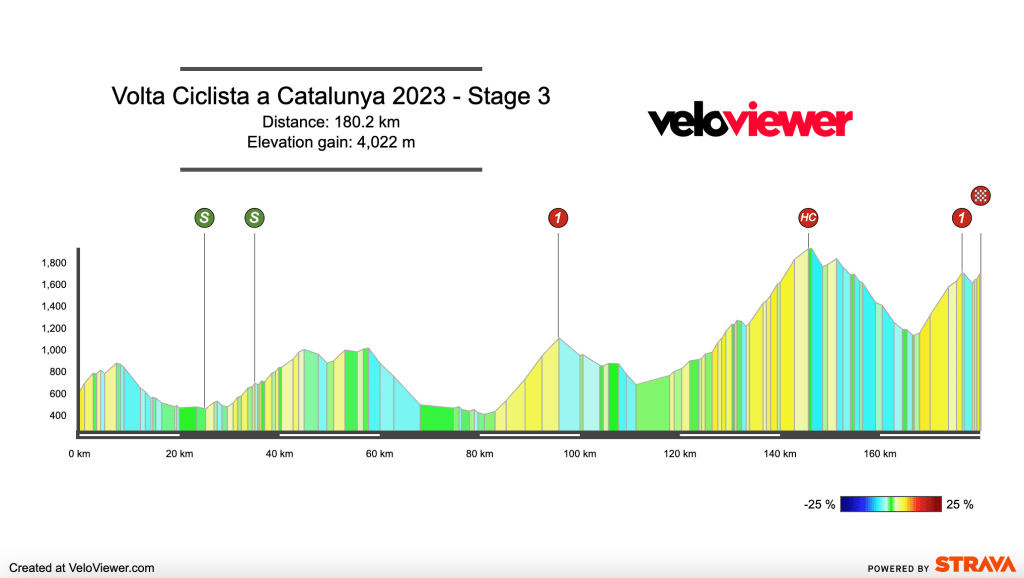 With just over 4000m of climbing, this is a tough day in the saddle. The race finishes with La Molina, a climb that rarely causes gaps between the best riders, but it all depends on how the climb is ridden.