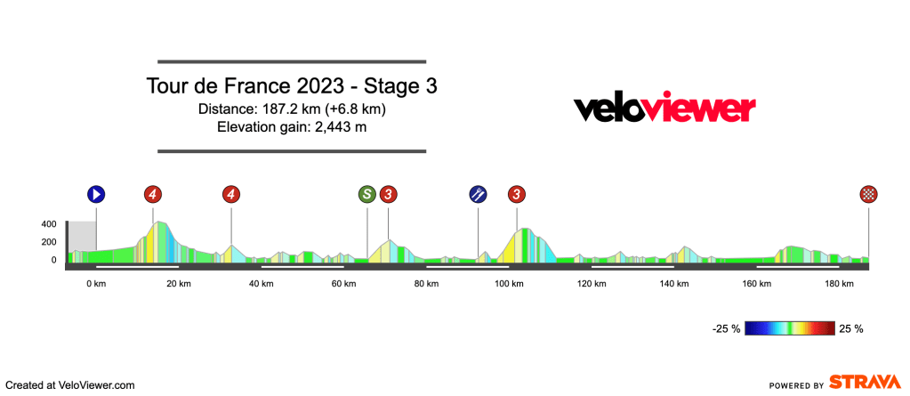 Dylan Groenewegen – despite the flattish looking profile, there’s still 2443m of climbing in this stage, which is a lot for a rider the size of Groenewegen. He’ll be in the mix but could find his legs a little sore when the sprint starts to open. Stage 4 should be much better for him.
