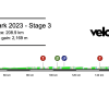 This is the hill the riders have to tackle three times in the final 15km of the stage, the final time up crests with just 3km to go. Despite that, as the climb is 1.2km at 4.6%, it shouldn’t cause the sprinters too many problems. The key is to remain near the front on the climb, getting back up the peloton in the final 3km will be tricky.