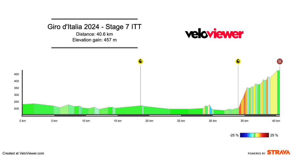 After today, Pogačar remains in pink and Pelayo Sánchez can be very pleased with himself. Stage 7 and it’s the first battle against the clock, and it’s a long one. The Giro has long favoured a lengthy TT, and this looks a good route. 34km of flat, followed by 1.3km at 11% and then 5km of mainly uphill. The flat is obviously good for the TT specialists, but will the climbing be too much for them?
