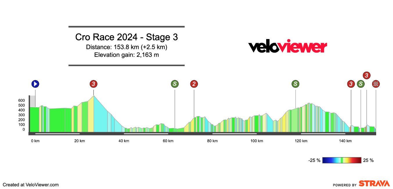 This stage is identical to last year’s third stage, that day, Parisini took the win from Andresen and Mohorič, the front group only had 28 riders in it come the finish. The profile doesn’t look that hard, but the final climb crests with just 4km to go, so it’s very hard for dropped riders to get back to the front.