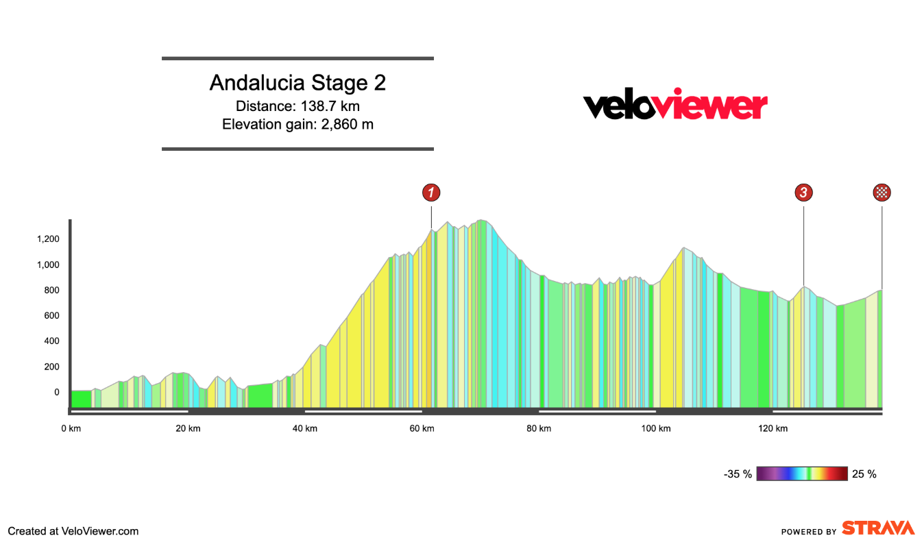 Another day where it’s up to the riders to make the race. Just like on Wednesday, the big climb comes very early in the stage, will we see attacks?